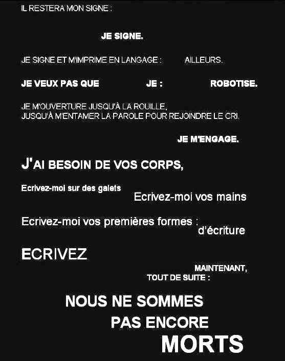 IL RESTERA MON SIGNE Édith Azam Texte inédit pour Terres de femmes (D.R.) NOTE d’AP : ce poème a été sélectionné pour l’anthologie pas d’ici, pas d’ailleurs (anthologie poétique francophone de voix féminines contemporaines) publiée par Voix d’encre en juillet 2012. _______ Source Photos |