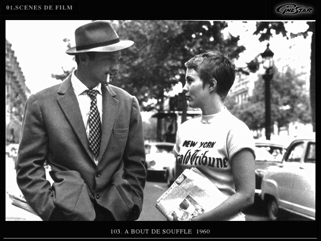 Mars 1960. Quatre films de mémoire sur les écrans parisiens : Plein soleil de René Clément, Les Yeux sans visage de Franju, Soudain l’été dernier de Joseph Mankiewicz et À bout de souffle (1959), le premier long métrage de Jean-Luc Godard et le film culte de La Nouvelle Vague, sorti le 16 mars 1960 [tourné en un mois, du 17 août 1959 au 19 septembre 1959]. Avec François Truffaut comme scénariste et Claude Chabrol comme conseiller technique. Une musique de Martial Solal. Et le couple mythique Patricia Franchini (Jean Seberg [« Pourquoi ne portes-tu jamais de soutien-gorge ? », qui vient tout juste de jouer dans Bonjour tristesse d'Otto Preminger]) et Michel Poiccard (Jean-Paul Belmondo).
