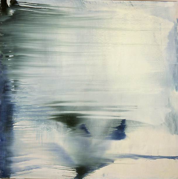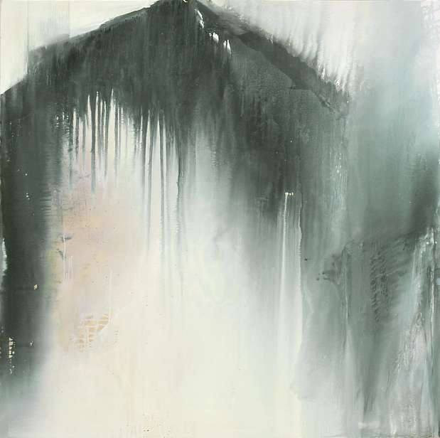 Dans l’ordre du temps et de la rencontre, la première exposition que j’ai vue d’elle se tenait au Bateau-Lavoir à Grenoble. La galerie y exposait les toiles des années 1994-1996, celles des verts sombres et des violets où la peintre travaillait une matière-couleur encore dans l’épaisseur. À la toile ocre du lin elle alliait la terre, les pigments et le liant mais jouait déjà avec l’eau pour marier le poids, le reflet et la profondeur. Orients, titre d’une de ses toiles, exprime bien la sensation éprouvée devant ces tableaux, jardins de mémoire, jeux d’échos dont le fugitif chatoiement, les traversées d’ombre m’arrêtaient, comme suspendue dans l’espace et l’éternité de l’instant. Le renversement, Définition du matin renforçaient les associations avec les peintres chinois.