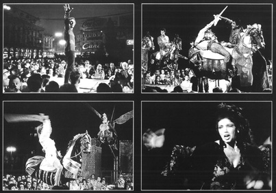 E. Sanguineti : Le Roland furieux a constitué avant tout un changement radical dans la conception de l’espace théâtral. Il y avait déjà eu, précédemment, des tentatives de renouvellement du théâtre italien. Mais elles n’avaient pas réellement abouti. Le Roland furieux a aboli la traditionnelle frontière entre acteurs et public, transformant le spectacle en une énorme fête collective, et le lieu de spectacle en un lieu de communauté festive. Avec une redistribution des rôles acteurs/spectateurs absolument unique.