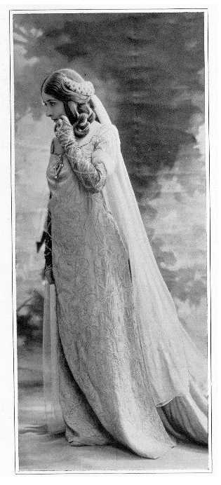« Voici donc, âgée de vingt-huit ans [Mary Garden] avec les longs cheveux, qui plongent dans l’eau de la fontaine au deuxième acte et descendent jusqu’au seuil de la tour au troisième. Son physique, son phrasé et la couleur de sa voix […] contribuèrent au succès durable, sinon immédiat de l’ouvrage. Mary Garden avait fait ses débuts à l’Opéra-Comique deux ans plus tôt dans Louise de Gustave Charpentier et connut une carrière internationale, essentiellement américaine, dans des rôles aussi divers que Violetta (La Traviata, Giacomo Puccini), Carmen (Carmen, Georges Bizet), Tosca (Tosca, Giacomo Puccini) et Salomé (Salomé, Richard Strauss). » [Source Photo et légende : BnF]. |