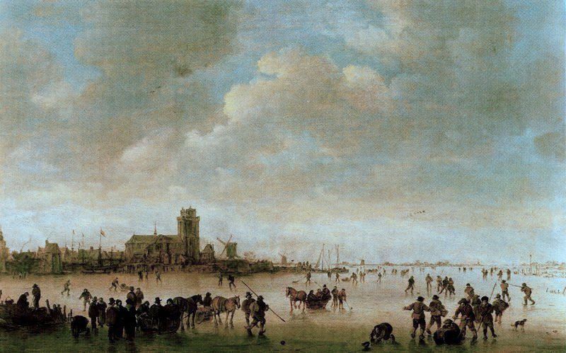JAN JOSEPHSZ VAN GOYEN, PAISAJE INVERNAL CON FIGURAS EN EL HIELO, 1643